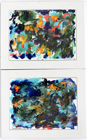 Contenotte "Senza titolo" coppia di piastrelle (cm 30x40) firmate e datate...