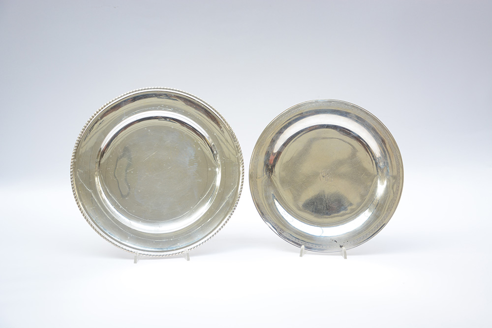 Lotto composto da due piatti tondi in argento (gr 880 ca)
