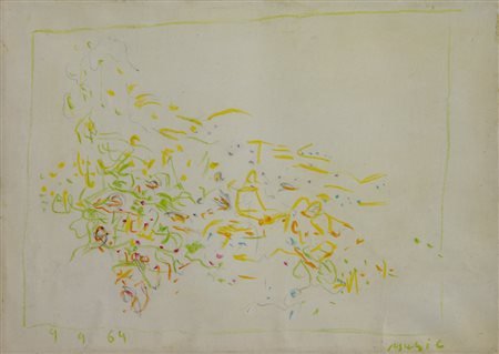 Zoran Music Senza titolo, 1964 Matita e pastello su carta applicata su tela, cm. 25x35 Firma in basso a destra, data in basso a sinistra. Conferma verbale di Autenticità della moglie Ida Barbarigo. L'Opera verrà pubblicata sul prossimo Catalogo Generale delle Opere dell'Artista.