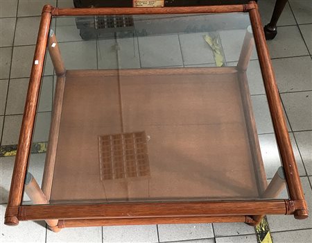 Tavolino da salotto a due ripiani in legno e vetro (cm 80x44x77)(difetti)
