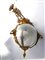 Lampadario in metallo dorato con teste leonine e diffusore a boccia satinata...