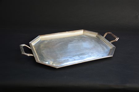 Vassoio ottagonale in argento a due manici (cm 58x34,5) (g 1600 ca.)(lievi...