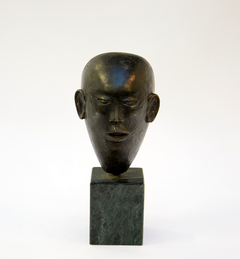 Firma indecifrata "Volto" scultura in bronzo firmata e datata '99 sul retro poggiante su base in marmo