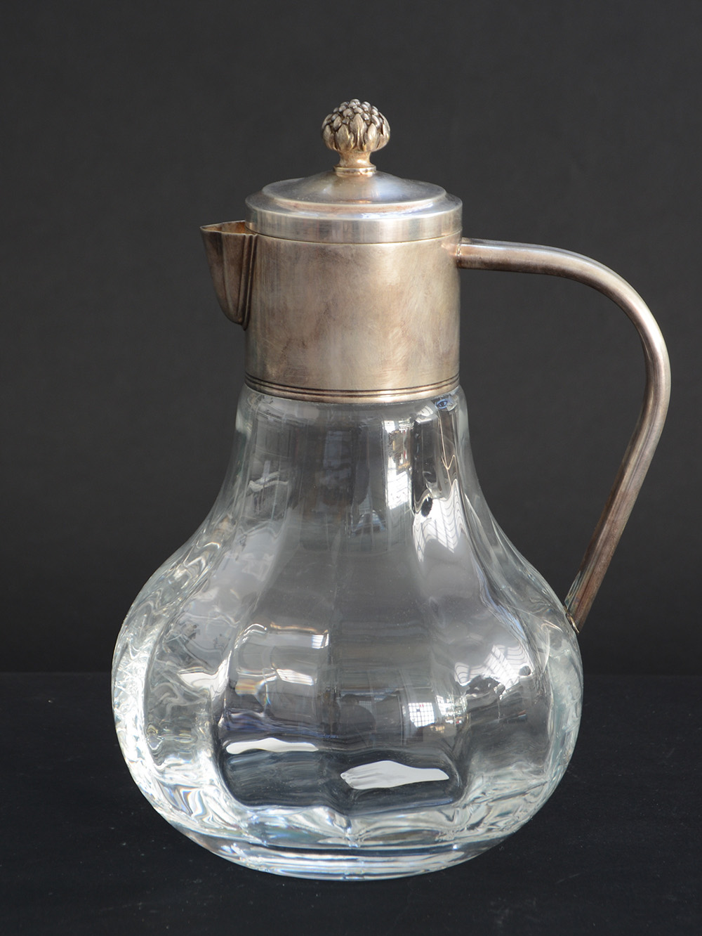 Versatoio in vetro con ghiera in metallo (h cm 26) (difetti)