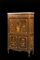 Secretaire con fronte intarsiato e filettato a motivi geometrici e floreali....