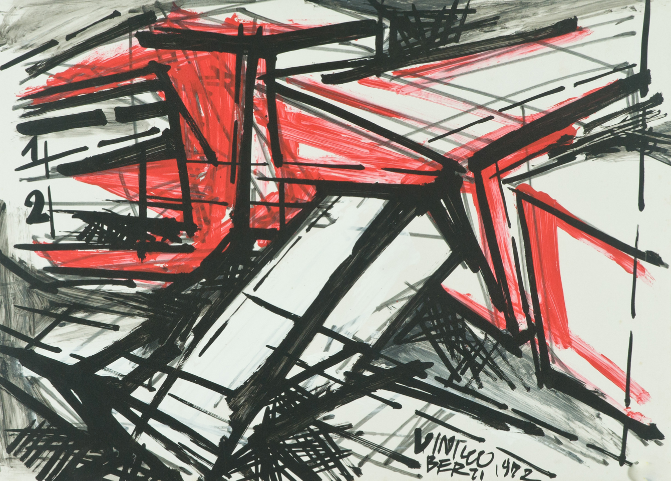 Vinicio Berti Senza titolo, 1972 Tempera sintetica su cartoncino applicato su tela, cm. 50x70 Firma e data in basso a destra.