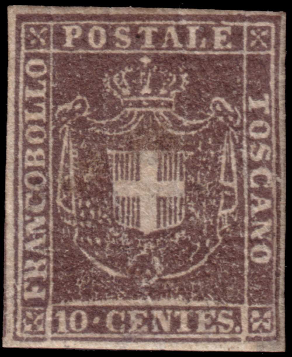 TOSCANA 1859Governo Provvisorio. 10c. bruno. Margine inferiore destro...