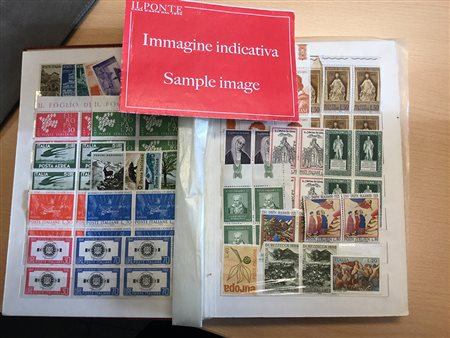 Lotto composto dalle collezioni non complete di Vaticano e San Marino del periodo oltre ad alcuni classificatori, album e pergamini di francobolli mondiali. Da esaminare