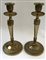 Coppia di candelieri in ottone decorati a motivi concatenati e volute e...