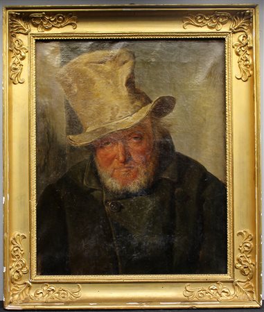 Ignoto "Vecchio con cappello" olio su tela (cm 55,5x45,5) In cornice (difetti)