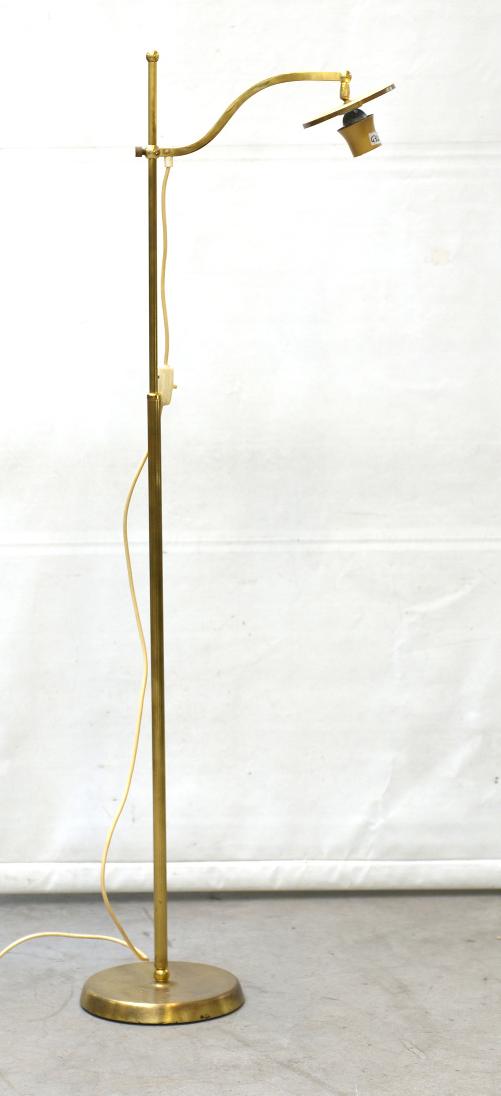 Lampada da terra in ottone con braccio mosso e regolabile (h max cm 142) (difetti)