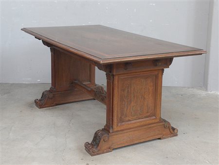 Tavolo da pranzo in stile rinascimentale con montanti e gambe filettate a...