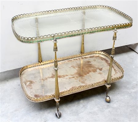 Carrello porta vivande in metallo argentato con ghiere traforate (cm...