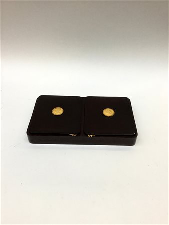 Scatola in legno laccato a due scomparti con coperchi decorati a medaglioni...