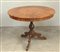 Tavolo da salotto di forma tonda con piano intarsiato e filettato a motivi...