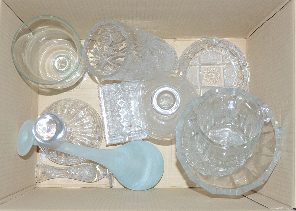Cartone contenente numerosi vasi in vetro di differenti fatture (difetti)