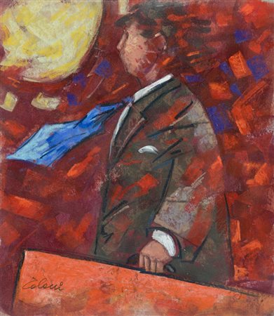 Giampaolo Talani Partenza rossa, 2012 Tecnica mista su cartone, cm. 40x35 Firmato in basso a sinistra. Sul verso: firma, data, descrizione; Timbro dell'Artista. Autentica dell'Artista su foto.