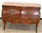 Cassettone di forma mossa a due mezzi cassetti ed un cassetto grande nella fascia inferiore. Montanti decorati con applicazioni in metallo dorato. Piano in marmo (cm 126x84,5x57) (lievi difetti)