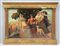 Scuola del sec. XIX "Figure in costume con paesaggio sullo sfondo" olio su tela (cm 65x98) in cornice a tempietto in legno e pastiglia dorata (difetti e mancanze)