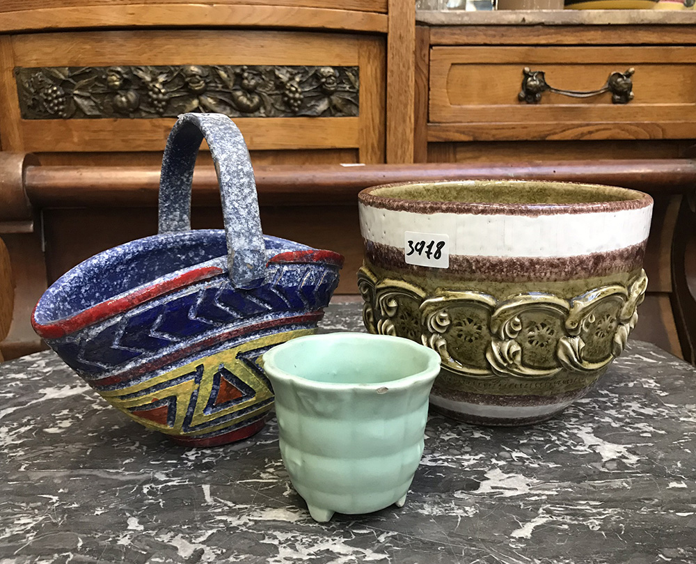 Lotto composto da tre portafiori di forme e materiali diversi (difetti)