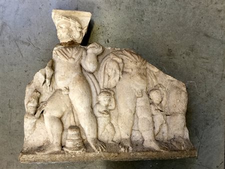 Antica scultura in marmo raffigurante putti (cm 62x59) (difetti)