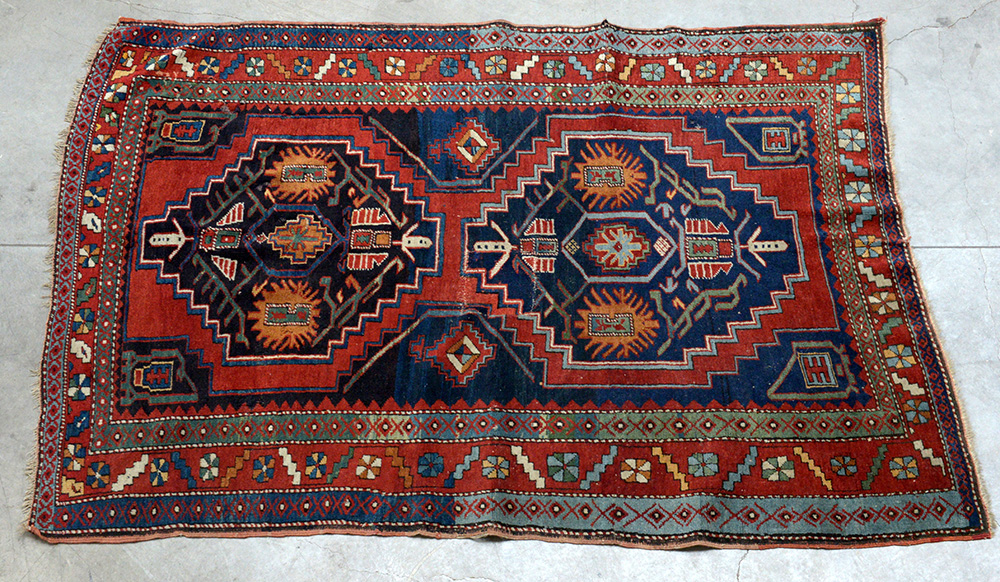 Tappeto Kazak, Caucaso fine sec. XIX Disegno con due medaglioni a fondo blu...