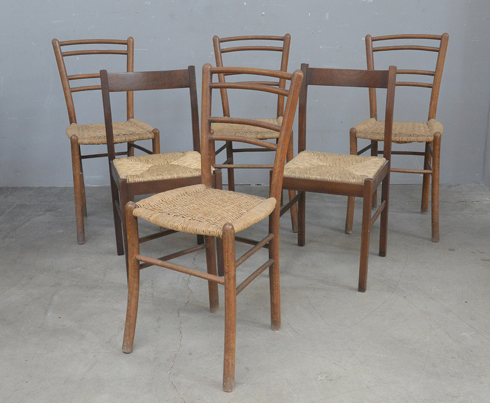 Lotto composto da un gruppo di quattro sedie, unite ad una coppia di fattura differente (difetti)