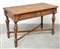 Antico tavolo da parete in noce con cassetto sottopiano, fascia decorata a...
