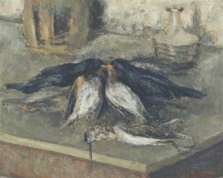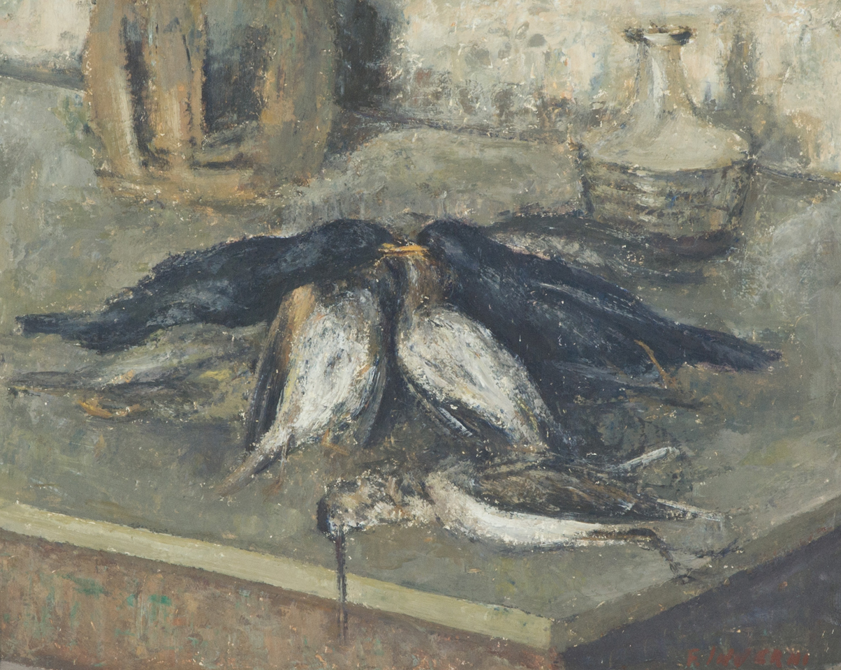 Francesco Inverni Natura morta Olio su cartone, cm. 40x50 Firmato in basso a destra. Sul verso: timbri "Galleria Giotto", Prato.