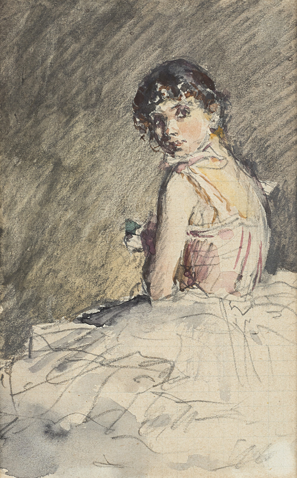 Pencil, touches of charcoal and wash on paper 128x80 mm.