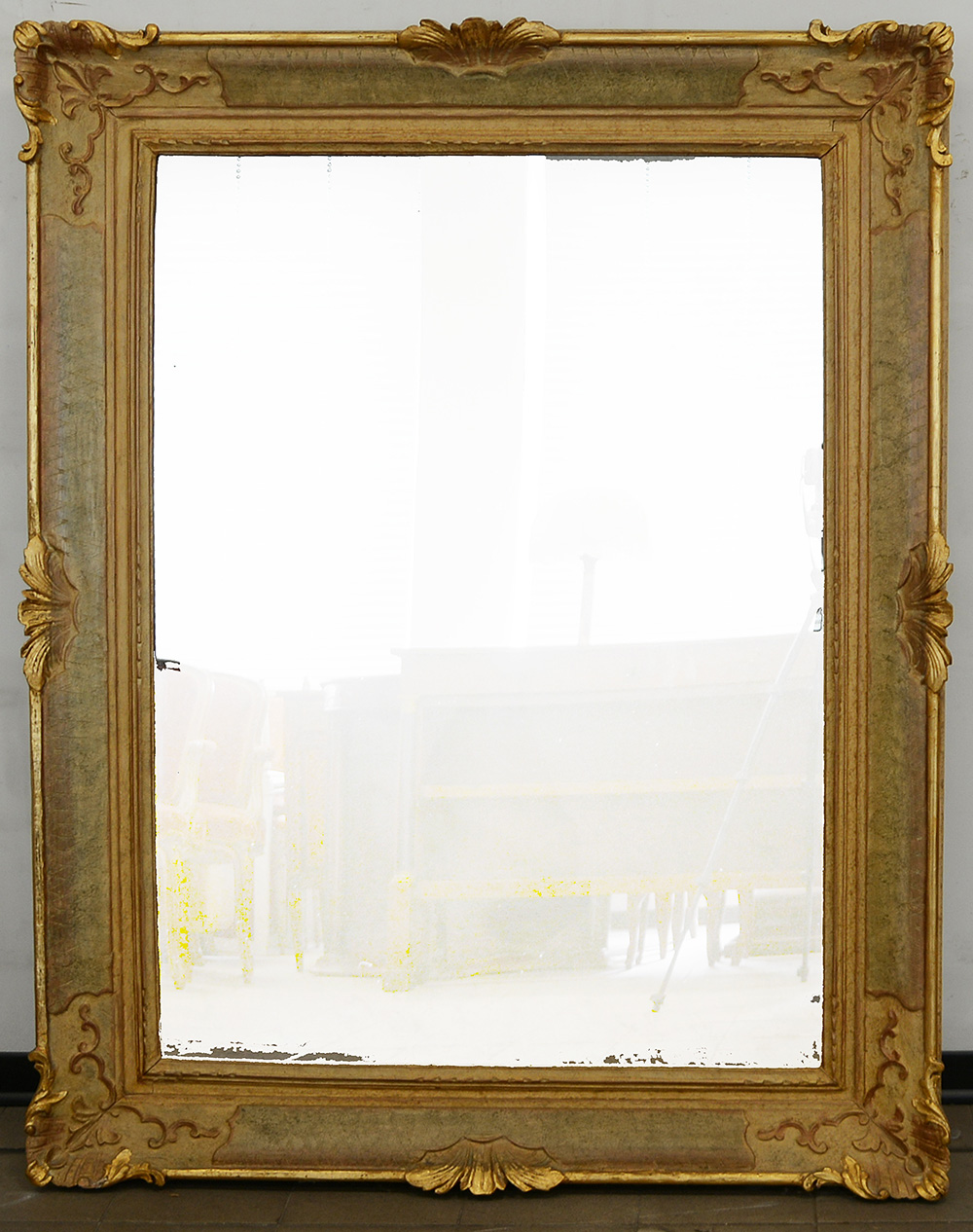 Specchiera con cornice in legno laccato e dorato decorata a motivi vegetali (cm 135x104) (difetti)
