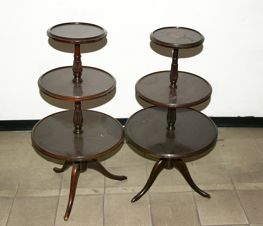 Lotto composto da due etagère e tre ripiani con piedi sagomati. Misure diverse (difetti)