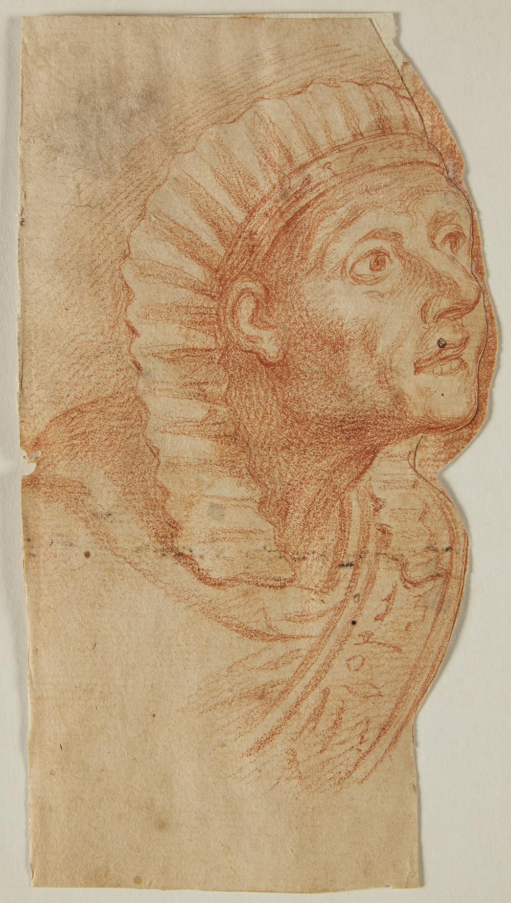 Artista del secolo XVIII "Studio di testa" matita rossa su carta sagomata (mm 162x90) (difetti)
