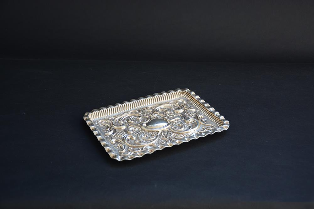 Vassoio portalettere in argento. Birmingham, 1897 (cm 27x19) (g 320 ca.)(lievi difetti)