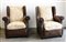 Coppia di poltrone in pelle marrone con profili borchiata (difetti)