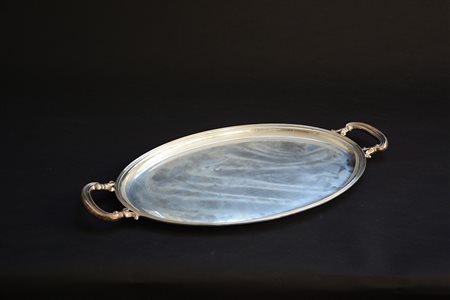 Vassoio biansato in argento (cm 55x29) (g 1079 ca.)(lievi difetti)