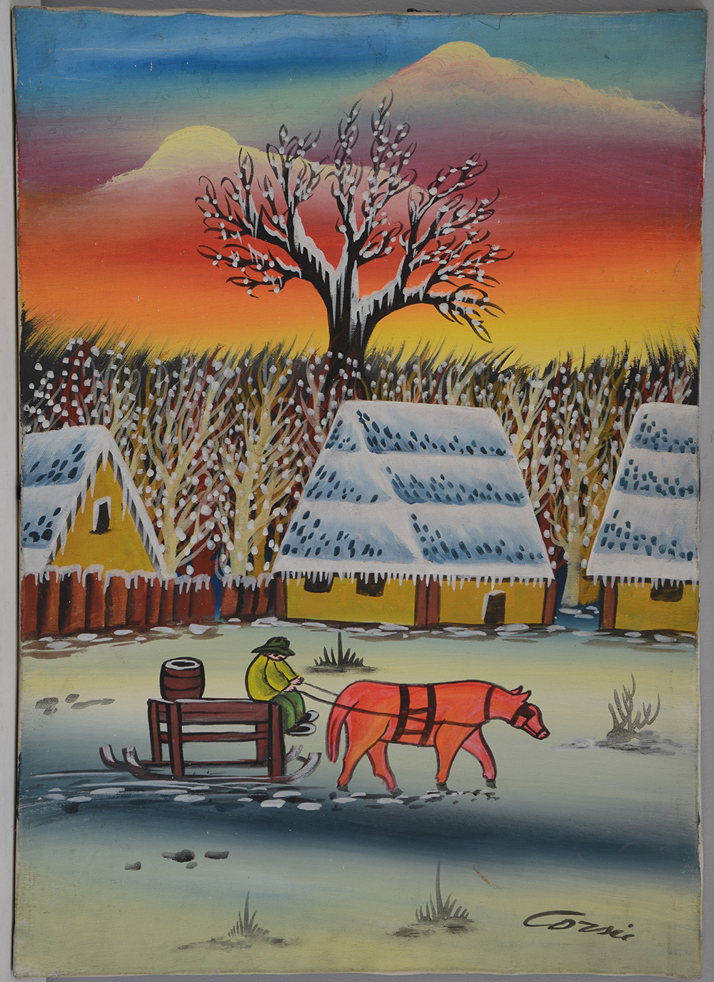 Corsu "Paesaggio invernale" dipinto naïf ad olio su tela (cm 70x50) firmato...