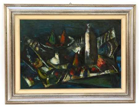 "Natura morta con frutta", olio su tela (cm 45x65), firmato in basso a sinistra, in cornice (lievi difetti)