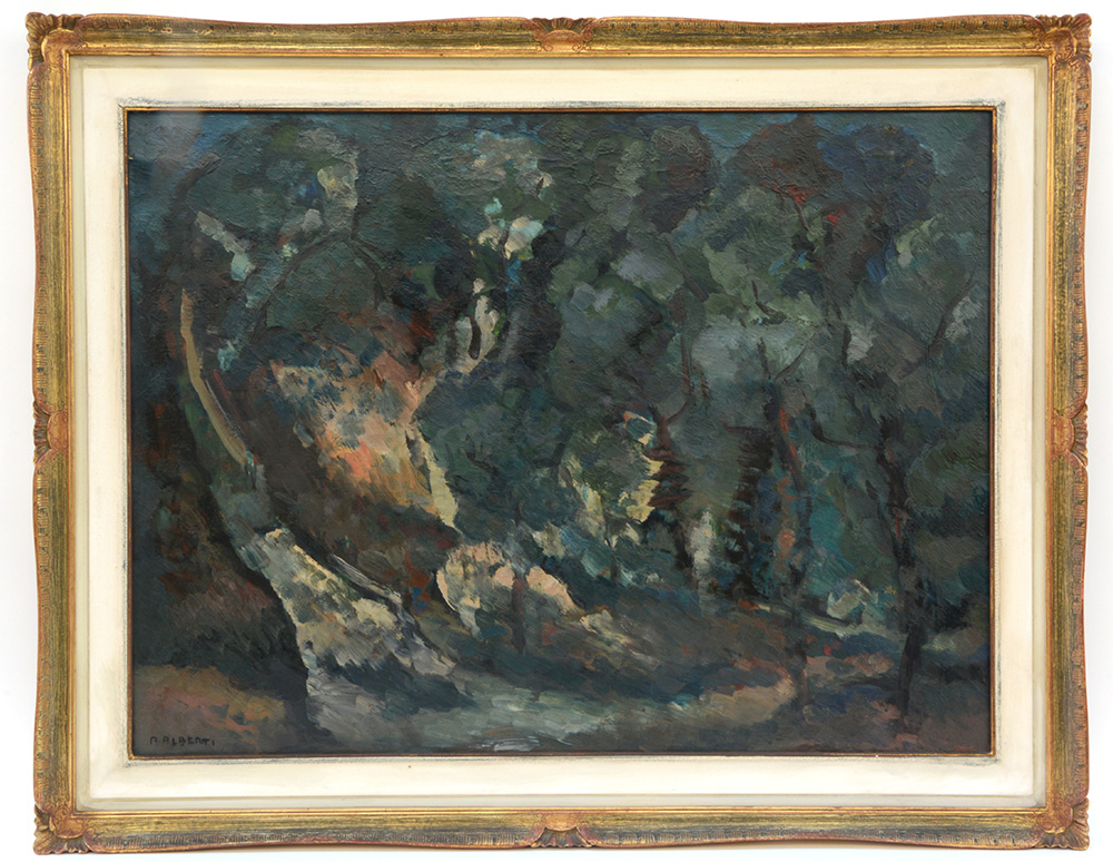 Aldo Alberti "Bosco", olio su tela (cm 60x80), firmato in basso a sinistra,...