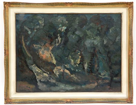 "Bosco", olio su tela (cm 60x80), firmato in basso a sinistra, in cornice