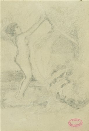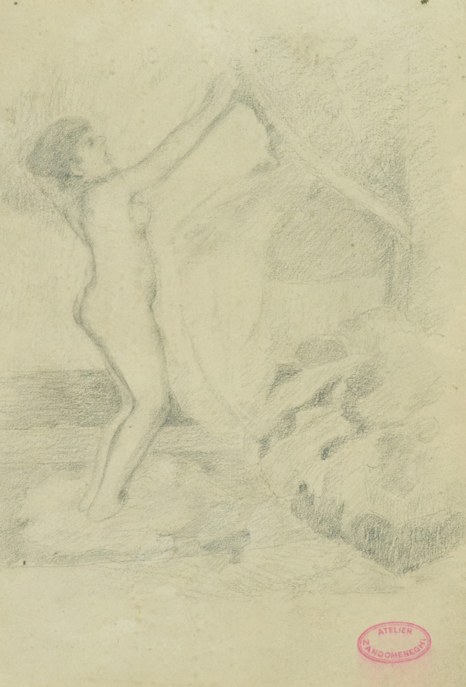 Federico Zandomeneghi Nudo Lapis su carta, cm. 28x20 Timbro "Atelier...