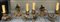 Lotto composto da una coppia di portacandele in legno dorato decorati a vaso...