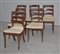 Gruppo di sei sedie in noce con sedute incannucciate, schienale a giorno e...