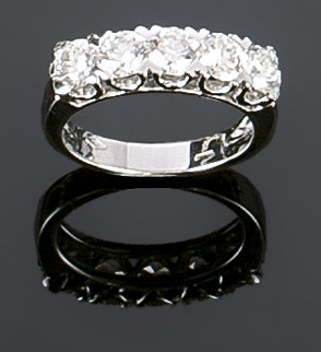 Lotto 347 | ANELLO Fedina con cinque brillanti taglio brillante rotondo per complessivi...