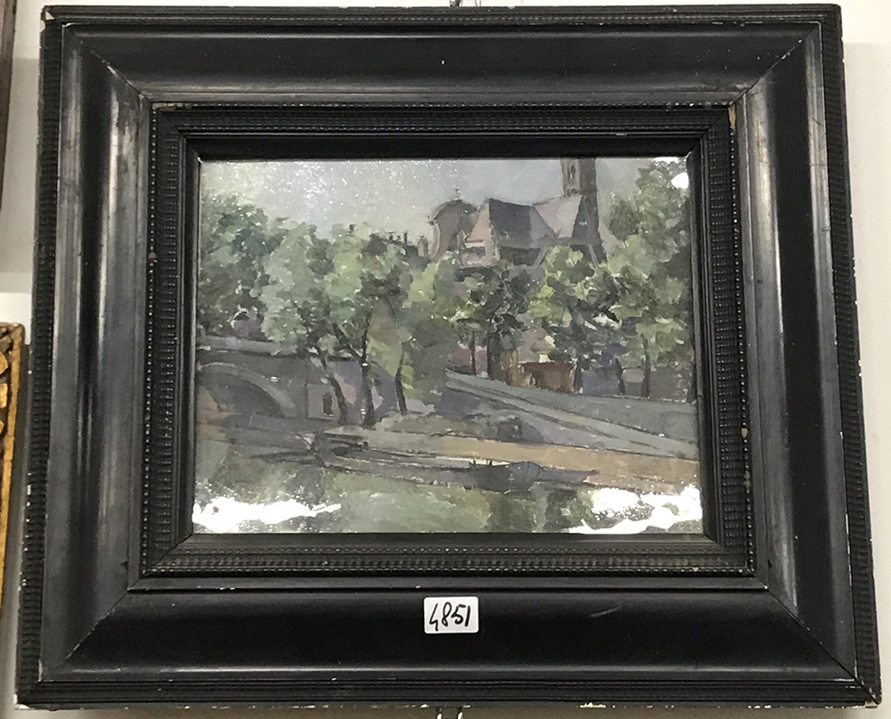 "L'èglise de S. Gervais" olio su tavoletta (cm 22x28) firmato in basso a destra. Al retro sulla cornice tracce di etichetta della galleria Scopinich, in cornice