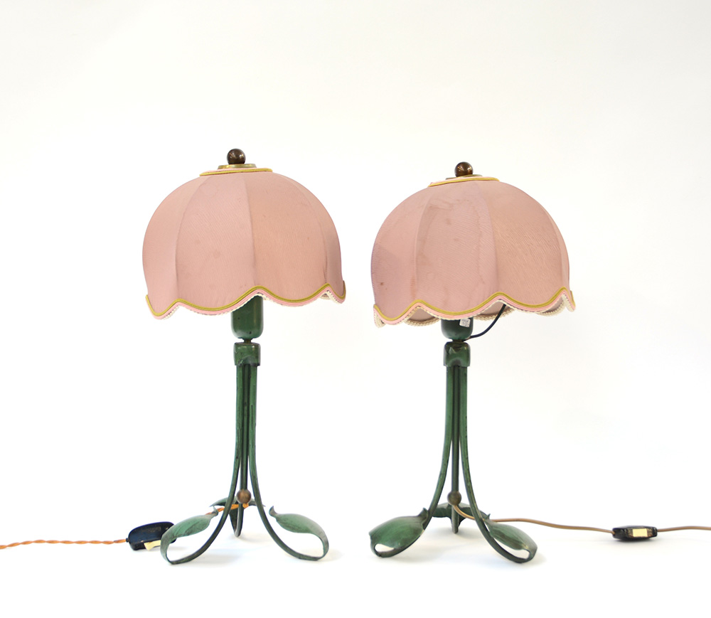 Coppia di lampade in metallo di foggia vegetale. Secolo XX.