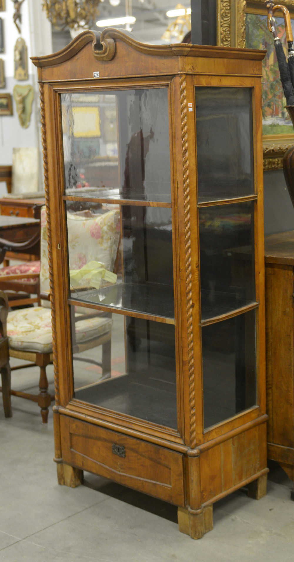 Vetrina in noce a tre ripiani, un battente e cassetto alla base, secolo XIX...