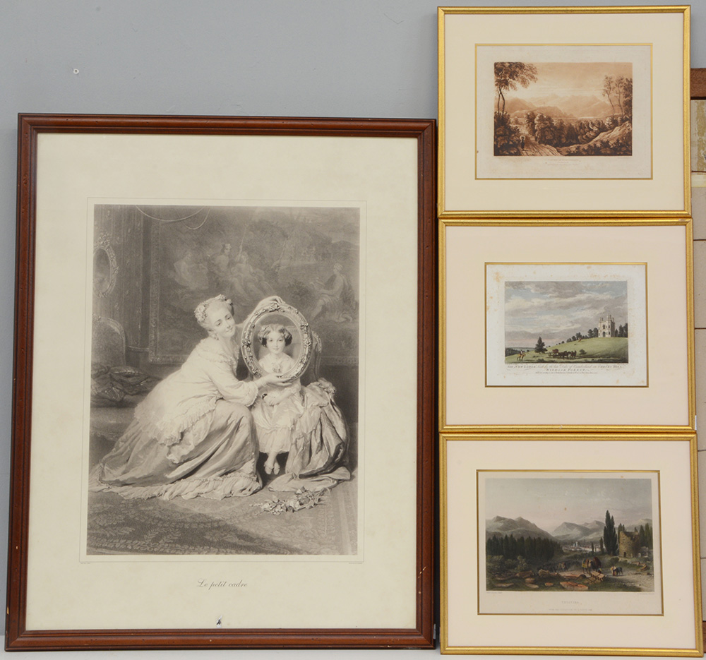 Gruppo di quattro incisioni di epoche e soggetti diversi. In cornici