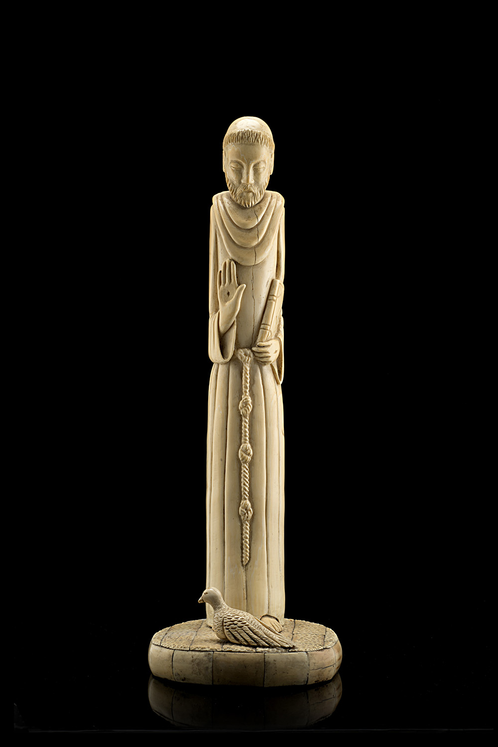 Arte coloniale, secolo XIX "San Francesco" statuetta in avorio (h. cm 43) (difetti)