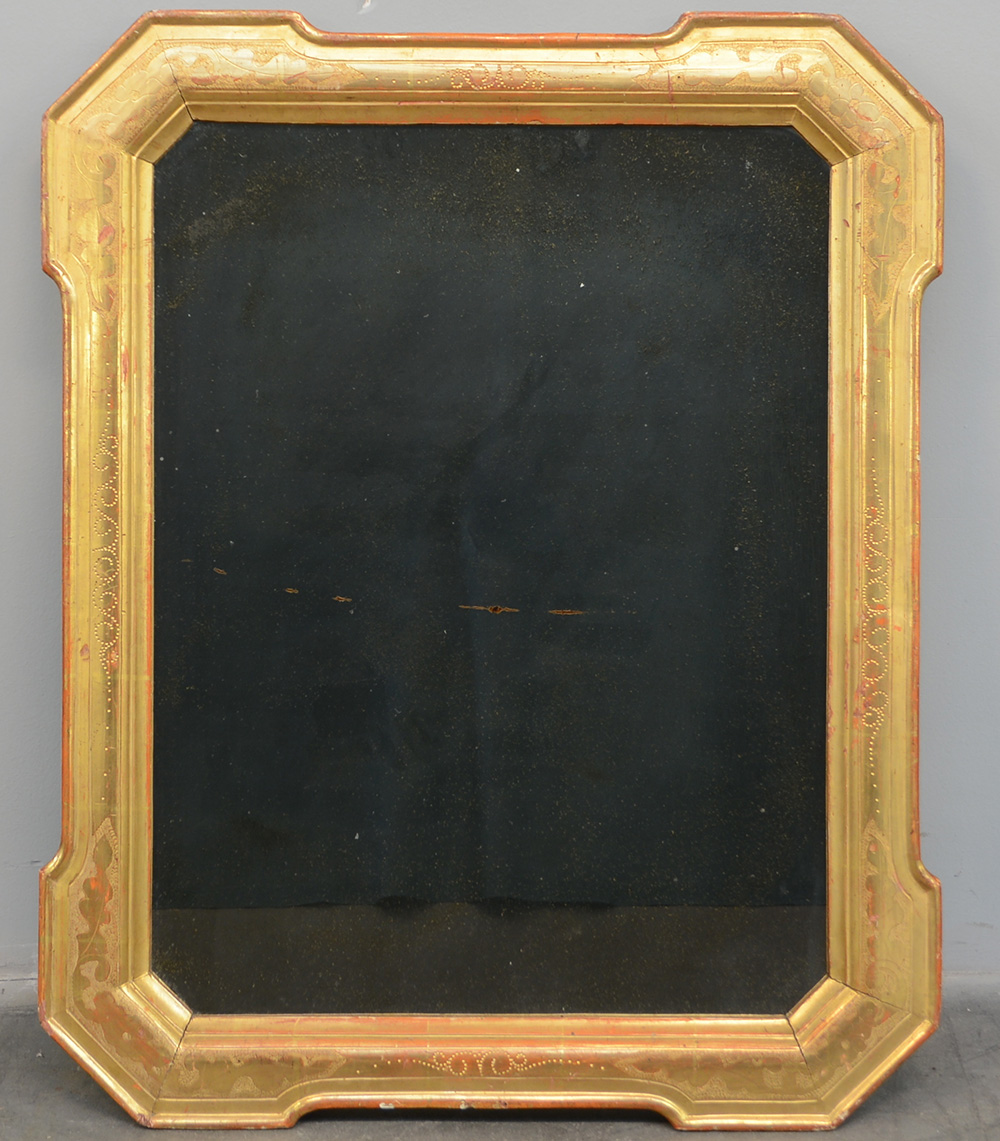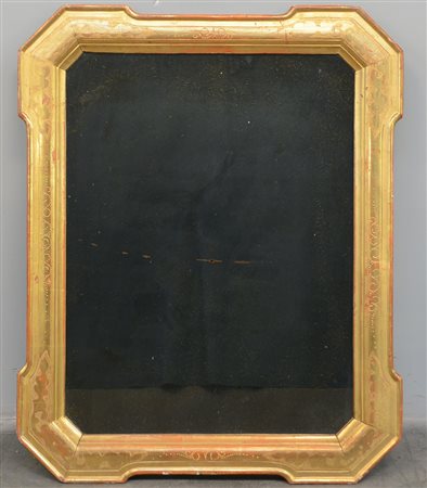 Specchio in legno dorato e bulinato. Secolo XIX (cm 79x63) (difetti)